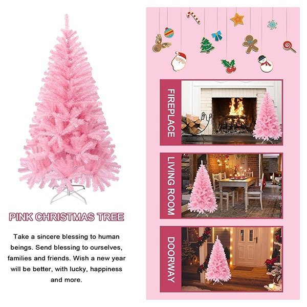 - UNIQUE PINK CHRISTMAS TREE:Guaranteed to be an immediate eye-catcher in any settings, made with apink design that putsa fun spinon the traditional tree design